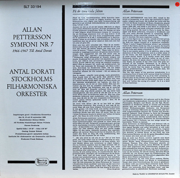 Allan Pettersson / Stockholms Filharmoniska Orkester / Antal Dorati : Symfoni Nr 7 (LP, Album, RP)