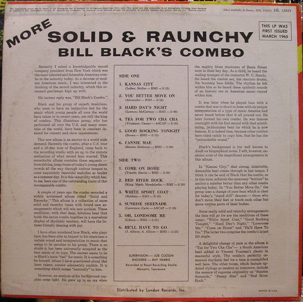 Bill Black's Combo : More Solid & Raunchy (LP, Album, RP)