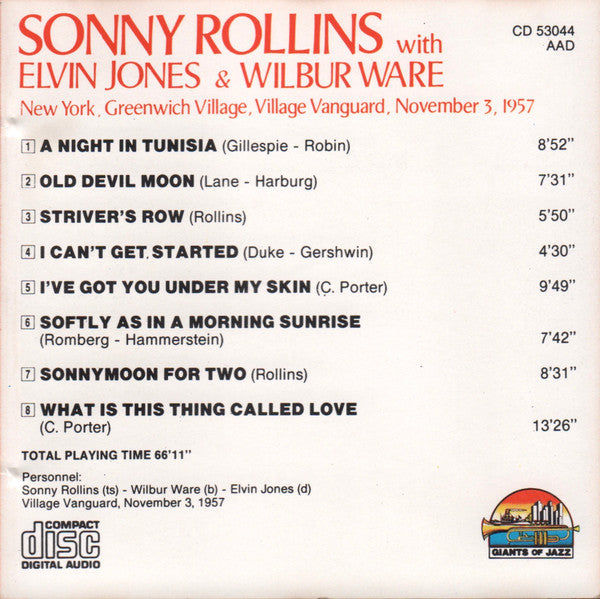 Sonny Rollins With Elvin Jones & Wilbur Ware - New York, Greenwich Village, Village Vanguard, November 3, 1957 - CD