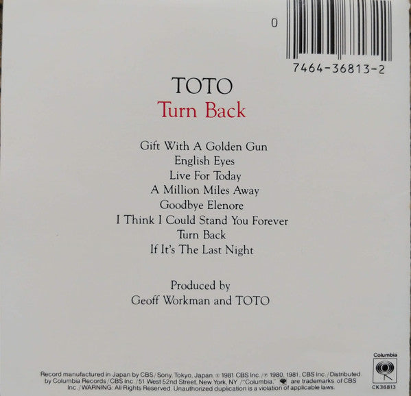Toto : Turn Back (CD, Album, RE, RP)